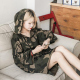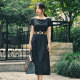 大喜自制 春季新款 复古性感一字领黑色显瘦显高镂空连衣裙中长款
