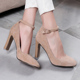 维兰朵新款真皮方头高跟鞋性感一字扣粗跟单鞋小码绑带套脚女鞋子