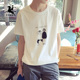 XENM 春夏新品落肩开叉t恤男青年学生字母简约五分袖T恤短袖男