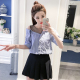 时尚套装裙女装2017夏季新款韩版雪纺上衣+a字短裙子两件套半身裙