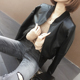 MOMO+/ 春季新 帅气利落撩妹款~黑色短款皮衣女立领棒球服皮外套