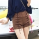 MOMO+/秋装新款欧美风 百搭休闲麂皮绒靴裤 短裤女 高腰 绑带系带
