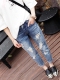 MOMO+/春季新款 bf水洗磨破做旧破洞牛仔裤女补丁贴布哈伦裤长裤