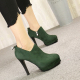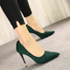 春秋气质优雅墨绿色尖头细跟超高跟鞋女欧美大牌通勤绒面浅口单鞋
