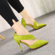 欧美性感春夏气质OL尖头细跟高跟鞋女浅口夜店绿色绒面中空单鞋潮