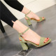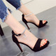 17夏季新款时尚露趾性感凉鞋气质绒面百搭水钻一字扣细跟高跟鞋女