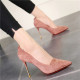 春秋韩版通勤浅口粉色细跟超高跟鞋女简约OL绒面尖头单鞋工作鞋潮