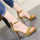 2017夏新款欧美性感金属一字扣带后拉链细跟高跟鞋名媛时装鞋凉鞋