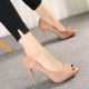 2017春季新款粉色淑女鱼嘴浅口绒面细跟超高跟鞋女夏气质通勤单鞋