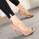 春季韩版公主风绒面鱼嘴细跟超高跟鞋女黑色气质百搭浅口套脚单鞋