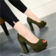 春秋新款欧美复古粗跟高跟鞋女2017新款鱼嘴防水台单鞋浅口女鞋潮