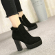 2016新款韩版时尚擦色圆头防水台粗跟超高跟鞋女侧拉链绒面单靴潮