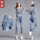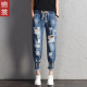 宽松破洞牛仔裤女九分裤春夏季新款韩版显瘦大码松紧腰乞丐哈伦裤