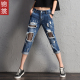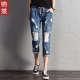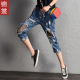 破洞宽松牛仔裤女七分裤哈伦裤春夏新款韩版显瘦直筒松紧腰乞丐裤