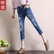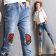 破洞牛仔裤女哈伦裤胖MM大码显瘦小脚铅笔裤弹力显瘦乞丐裤女刺绣