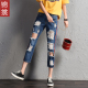 九分牛仔裤女宽松韩版显瘦破洞休闲9分裤潮2017春夏新款时尚涂鸦