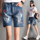 破洞牛仔裤五分裤女2017大码直筒短裤哈伦裤宽松胖mm休闲中裤夏