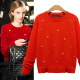 金渔木渔欧美秋冬纯色圆领针织衫女套头 修身订珠毛衣长袖打底衫