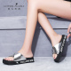 情人桂莉夏季新款真皮凉鞋一字型拖鞋漆皮松糕跟平底凉拖鞋女凉鞋