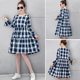 欧洲站春装新款韩版中长款女装宽松高腰娃娃裙a字裙格子连衣裙潮