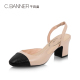 C.BANNER/千百度2017春夏新品羊皮|布小香风撞色半凉女鞋A7258010