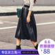 2017春装新款欧美高腰显瘦中长款蓬蓬裙大摆a字伞裙PU百褶半身裙