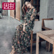 因由连衣裙2017夏季新款女名媛百褶A字两件套荷叶边碎花雪纺长裙