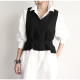 2017夏秋时尚流行女装韩版OL小西装马甲 双色拼接外套修身马夹薄