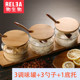 物生物调味罐套装 创意竹木有盖玻璃调料罐 厨房调味盒调味瓶盐罐