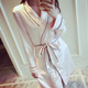 夏季长袖睡袍女性感奢华优雅浴袍仿真丝缎面纯色休闲睡衣裙家居服