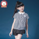 女童短袖衬衫2017夏装儿童女装女孩韩版棉质12-15岁条纹童装衬衣