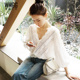 2017夏装新款七分袖宽松灯笼袖镂空荷叶边v领雪纺衫蕾丝上衣女
