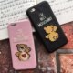 日本梨花熊iPhone6刺绣贴皮手机壳 苹果6s plus荔枝纹贴皮保护套