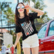盛放2017夏装新款 黑色圆领短袖T恤女宽松 条纹印花打底衫T恤上衣