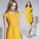 迪图2017新款春装 淑女修身显瘦圆领短袖连衣裙 订珠打底裙A字裙