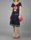 9287 欧美单 时尚民族风印花修身圆领七分袖连衣裙 有大码