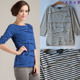 5057 女装圆领叠层款条纹立体视觉修身显瘦七分袖T恤