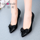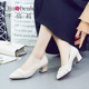 千佰莉2017年新款单鞋女 欧美时尚中跟粗跟方根牛皮尖头休闲女鞋