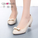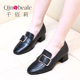 千佰莉 2017春季新款单鞋 女 中跟 粗跟 圆头牛皮浅口女鞋小皮鞋