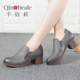 千佰莉2017春季新款女鞋子 牛皮侧拉链圆头厚底高跟粗跟单鞋 女