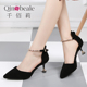 千佰莉2017新款春秋女鞋夏尖头浅口单鞋女 中跟粗跟工作鞋小皮鞋