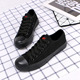 韩版黑色帆布鞋女学生平跟休闲鞋纯色全黑工作鞋远步系带低帮球鞋