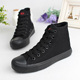 韩版高帮帆布鞋女平跟全黑远步系带纯黑色休闲鞋球鞋远步学生鞋