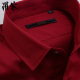波司登男士纯棉长袖衬衫修身男韩版酒红色纯色本命年免烫全棉衬衣