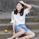 2017夏季新款文艺宽松显瘦系带一字领露肩短袖雪纺衬衫学生打底衫