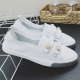 真皮小白鞋女2017新款韩版平底魔术贴圆头休闲鞋女百搭珍珠小白鞋