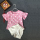 童装女童短袖套装2017新品韩版夏季儿童花边T恤碎花短裤两件套