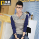 缤慕 春新款 男士韩版修身条纹针织衫 男装 春毛衣薄外套 潮