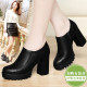 女鞋子春季2017新款韩版工作皮鞋黑色百搭春天粗跟单鞋高跟时尚夏