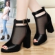 粗跟凉鞋女夏季中跟2017新款鱼嘴高跟韩版百搭女式夏天性感女鞋子